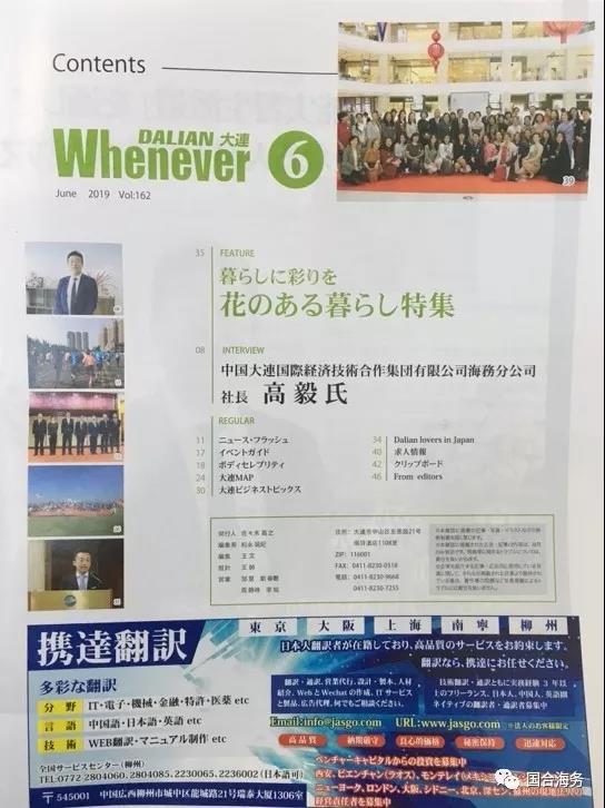 國合海務總經理高毅接受漫步雜志社專訪 2020-09-04 1745 2019年6月,我司總經理高毅先生接受大連著名的漫步雜志社記者專訪。 大連漫步雜志是一本日語綜合月刊雜志,旨在為居住在大連的日本人和日本旅客、在大連進行商務洽談的日本企業以及關注日本資訊的中國人提供有益信息。 在專訪中,總經理高毅對技能實習生制度的現狀及將來的發展趨勢進行了深度的剖析和解讀。表示今后會繼續用心經營技能實習事業,培養更多優秀人才,使他們成為中日兩國的友好橋梁。